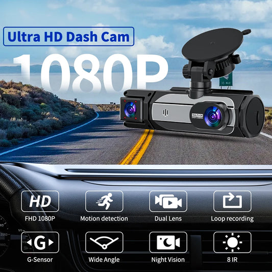 3 caméras Dash Cam 1080P caméra de recul avant et arrière Vision nocturne moniteur de stationnement voiture DVR 3 voies enregistreur vidéo de voiture avec cadeau