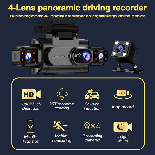 Caméra embarquée 4 canaux Wifi Full HD1080P DVR de voiture 4 caméras Caméra embarquée Enregistreur vidéo Super vision nocturne Boîte noire Cabine 4 objectifs caméra