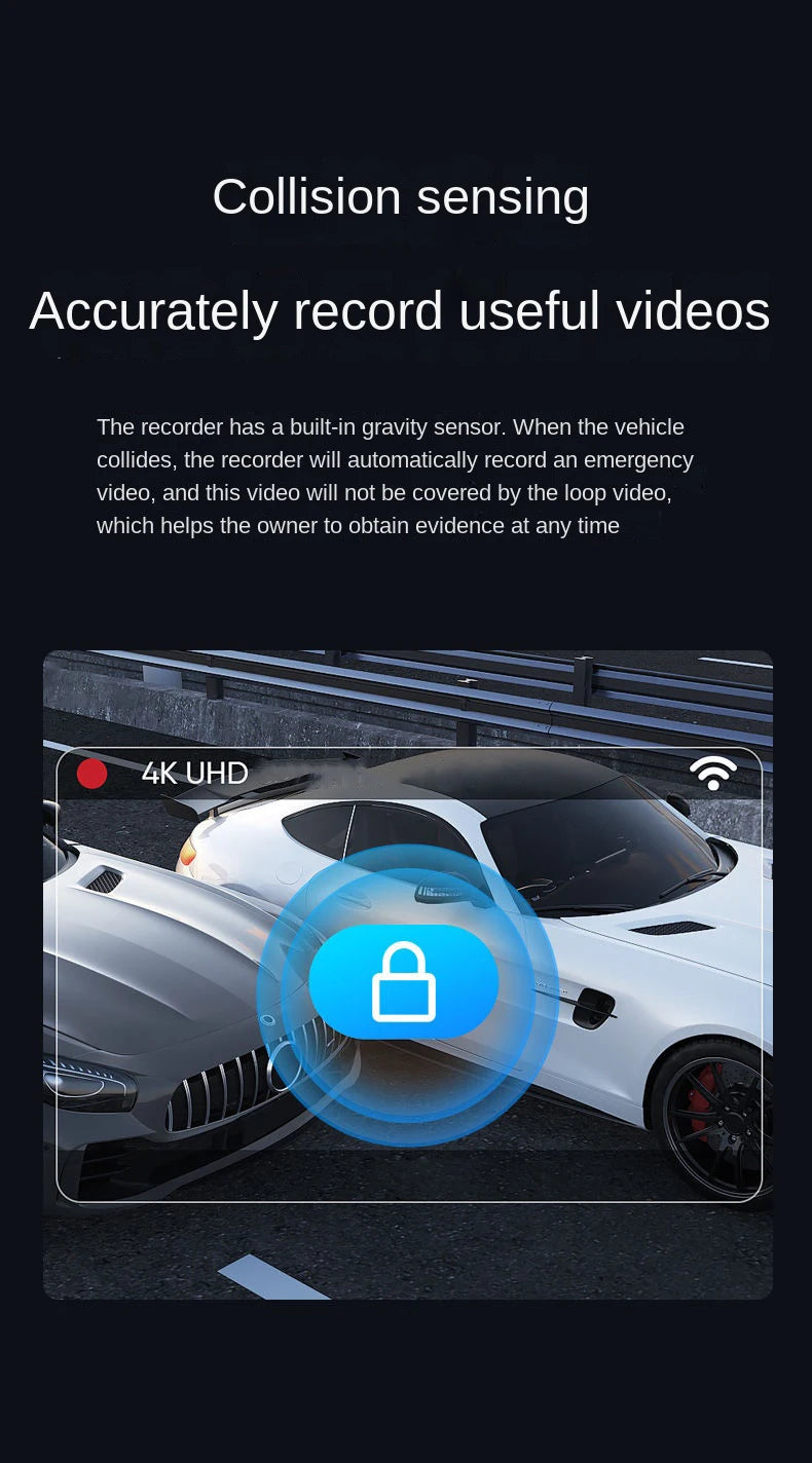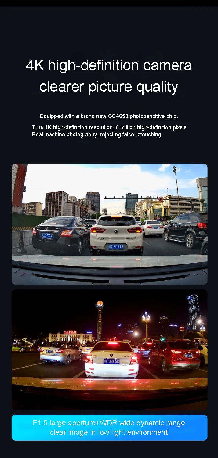 Fonctionnalités spéciales: Capteur G,détection de mouvement,carte sd/mmc,Impact anti-surtension,Anti-buée,Anti-vibration,Surveillance en temps réel,Balance des blancs automatique,Large plage dynamique,fonction wifi,Contrôle vocal,Moniteur de stationnement,NDR 3D