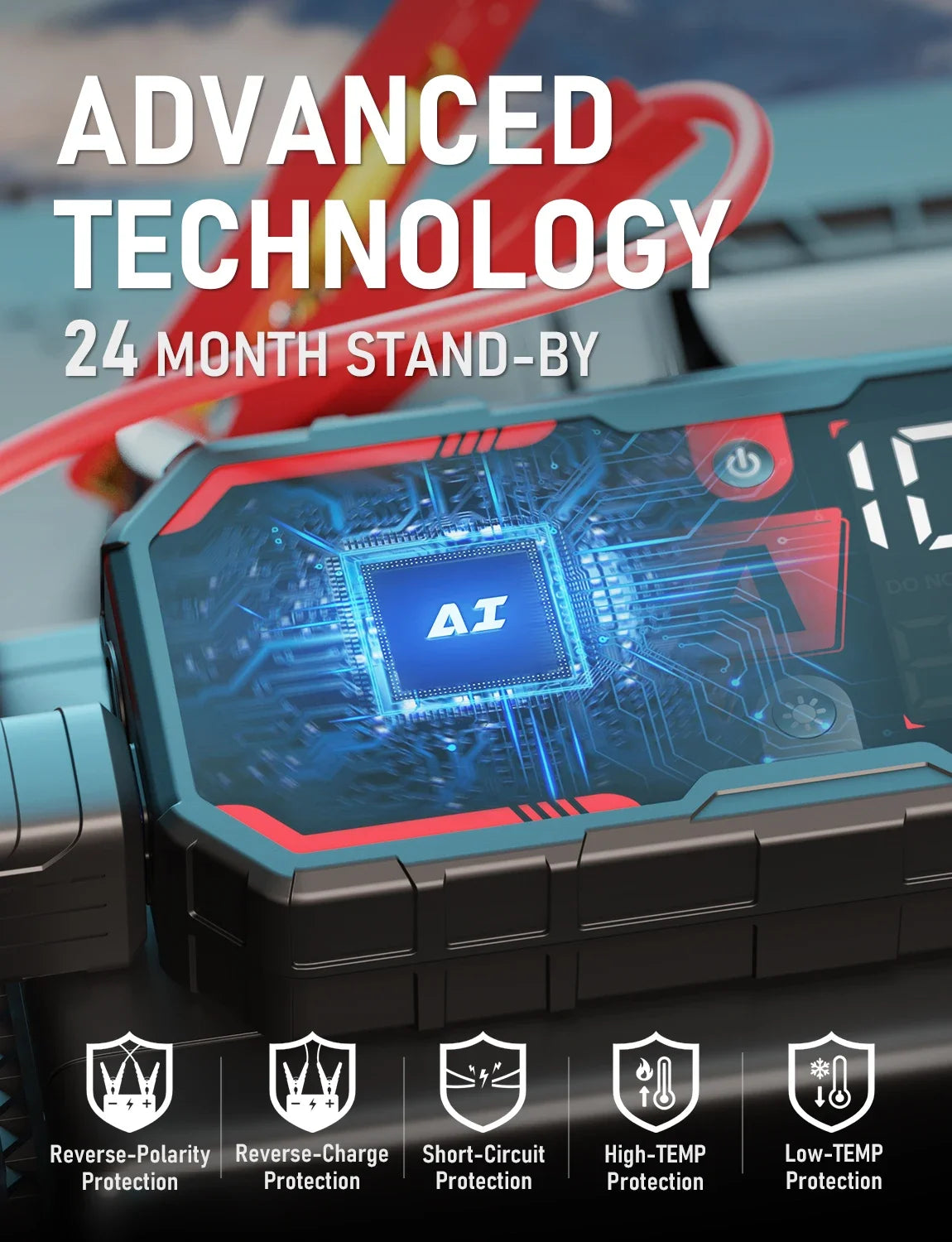 Deuxièmement, d'une perspective d'expérience utilisateur : il existe deux types de pinces sur le marché : des pinces droites (qui se connectent directement au démarreur et peuvent être inversées, risquant de dommages ou d'incendie) et des pinces intelligentes (qui ont une protection contre les courts-circuits et l'inversion de polarité). ).Auparavant, nous avons utilisé des pinces intelligentes, mais nous avons des nouvelles passionnantes!Nous avons amélioré notre produit pour intégrer la protection contre les courts-circuits et l'inversion de polarité directement dans l'appareil.Désormais, si un client inverse accidentellement les pinces, l'écran affichera « Ne démarre », évitant ainsi tout risque d'incendie et améliorant la sécurité!