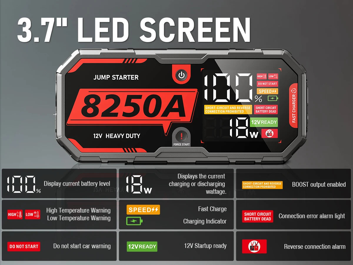 Démarreur de saut de batterie de voiture 8250A 12V Pro, Booster Portable PD65w 26000mAh, 13l, pour dispositif de démarrage d'urgence